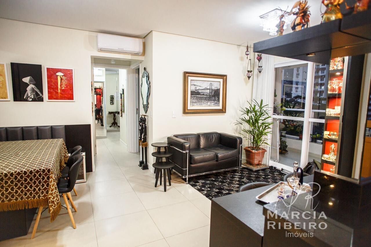 Apartamento com 2 dormitórios, sendo 1 suíte, sala para 2 ambientes, estar e jantar, sacada com churrasqueira a carvão, cozinha com móveis planejados, área de serviço, banheiro social, armários embutidos, ar condicionado, 1 vaga de garagem e hobby box.